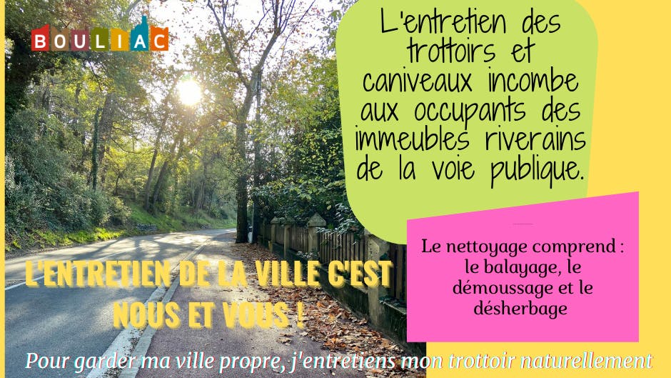 Il leur revient de maintenir en bon รฉtat de propretรฉ les trottoirs au droit de leur immeuble et ceci en dehors des actions rรฉguliรจres de nettoyage, des services techniques de la ville, de la voie publique.