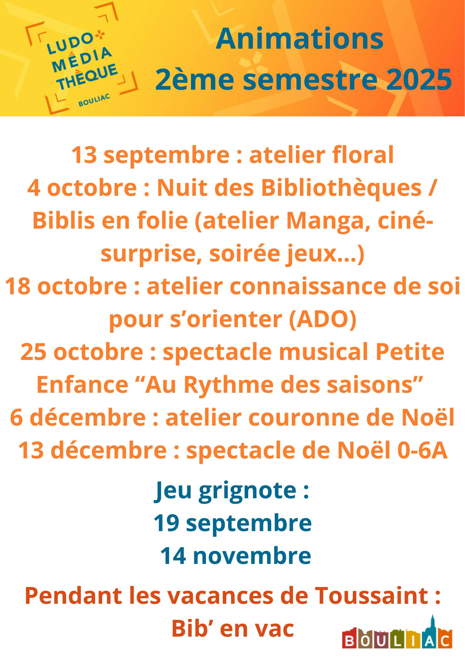 Ludo-Médiathèque - animations du 2ème semestre