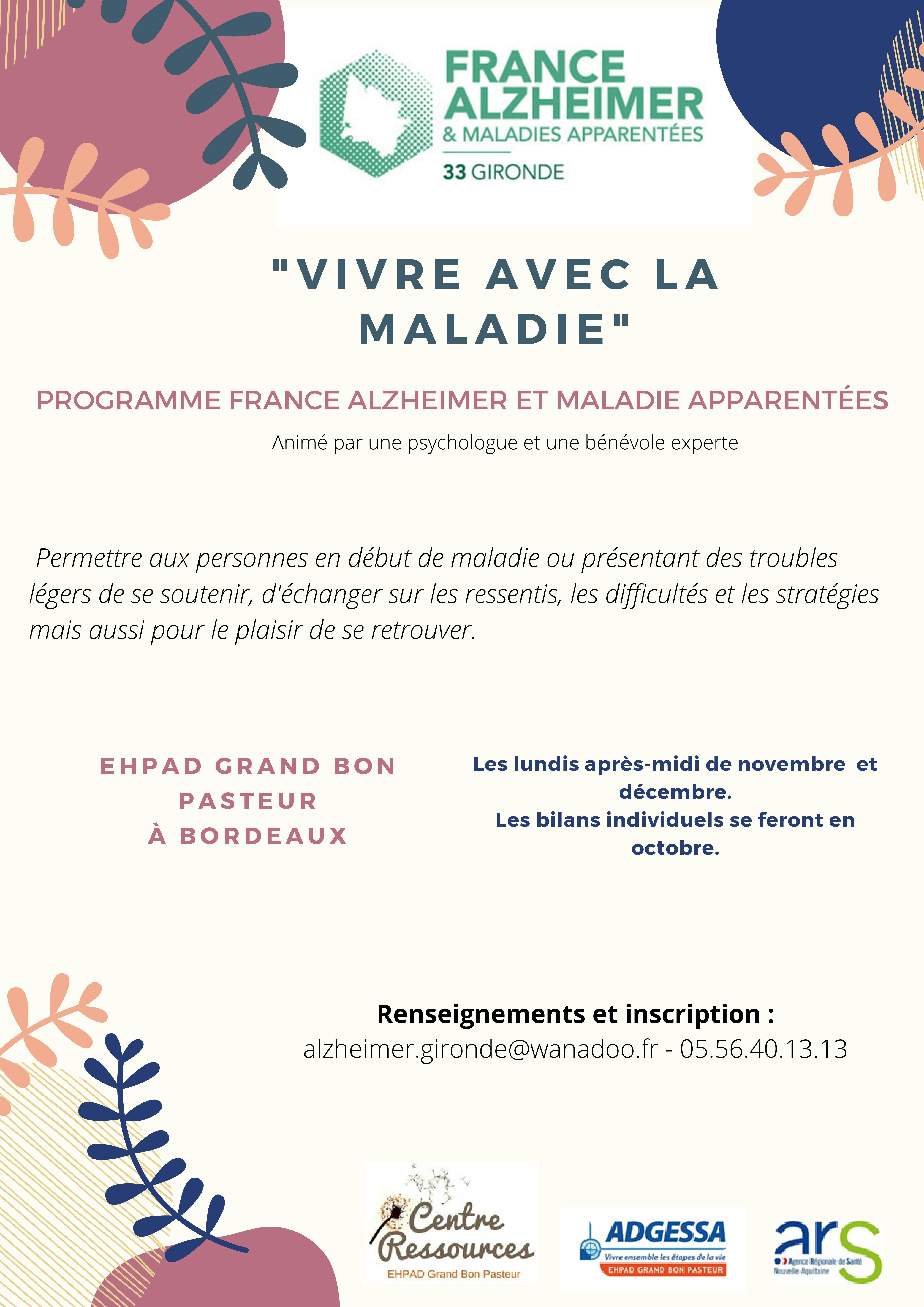 Pour les encourager, France Alzheimer a construit un programme «Vivre avec la maladie» sur le modèle de l’éducation thérapeutique du patient. Animé par un professionnel et un bénévole formés, il inclut des séances individuelles et des ateliers en groupe.
