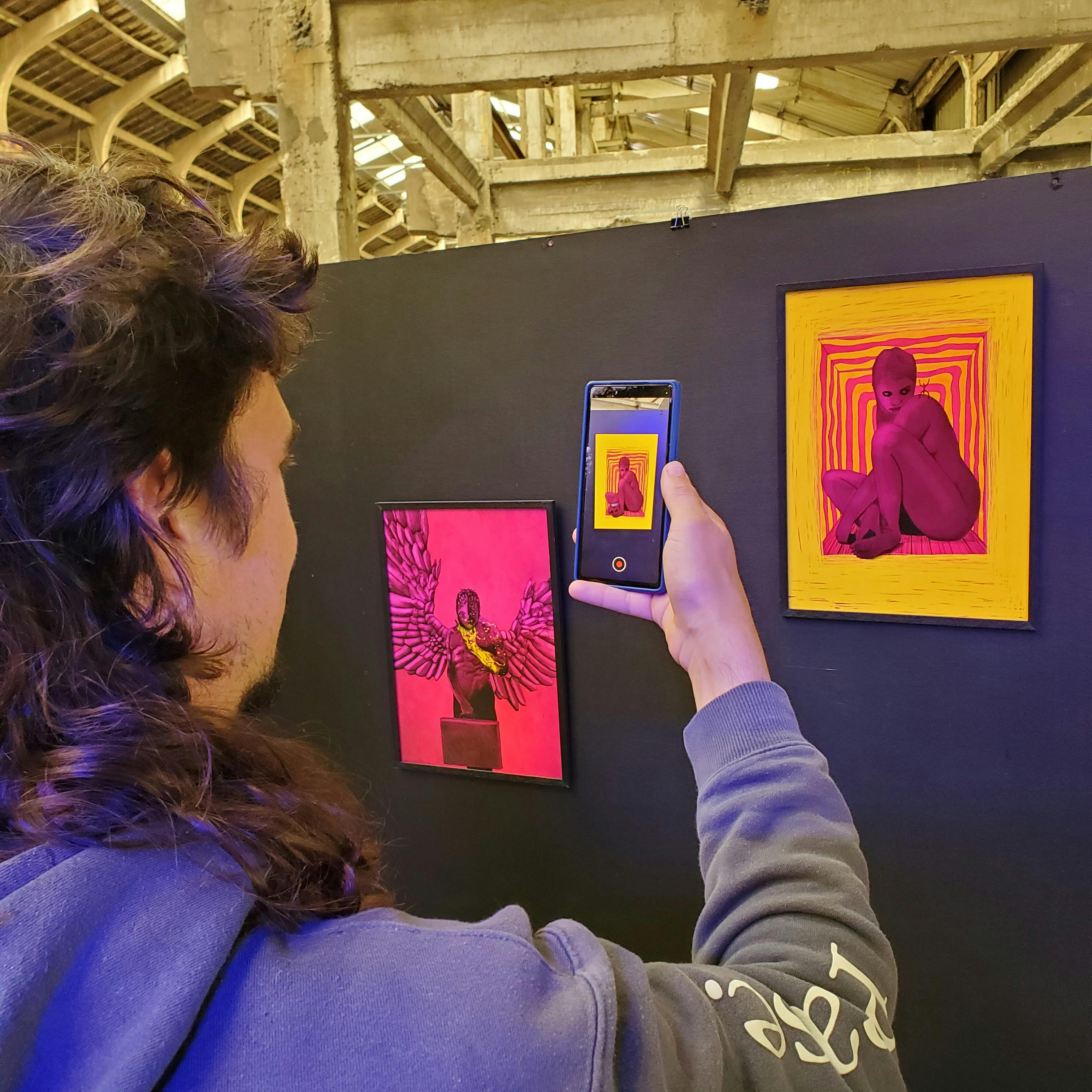 Exposition 2.0 : les œuvres présentées ici sont à voir en réalité augmentée via votre smartphone grâce à une appli gratuite. Lors de cette exposition il est aussi proposé une expérience en réalité virtuelle avec les casques VR.