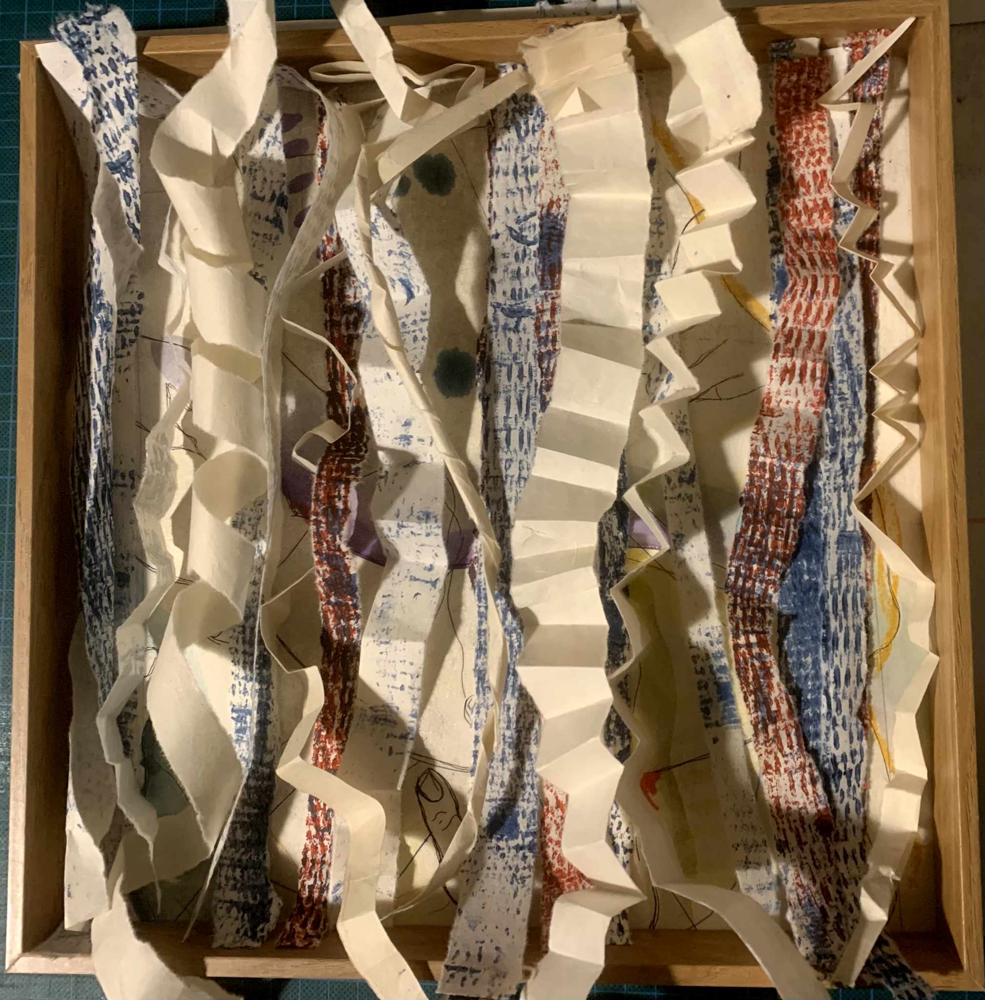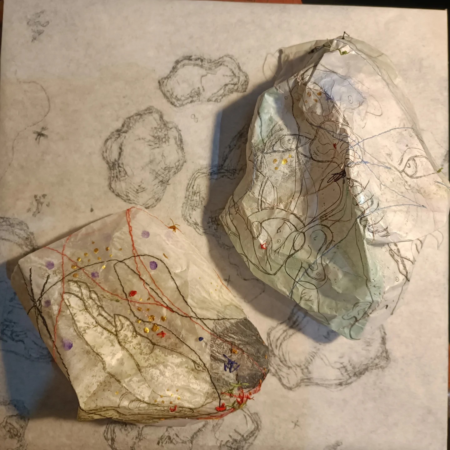 Elle attaque le métal, imprime sur différents supports et , parfois, coud ses tirages . Dans le sillon de sa pointe, elle capture l' âme des plantes et des êtres invisibles perchés dans un subconscient lumineux.