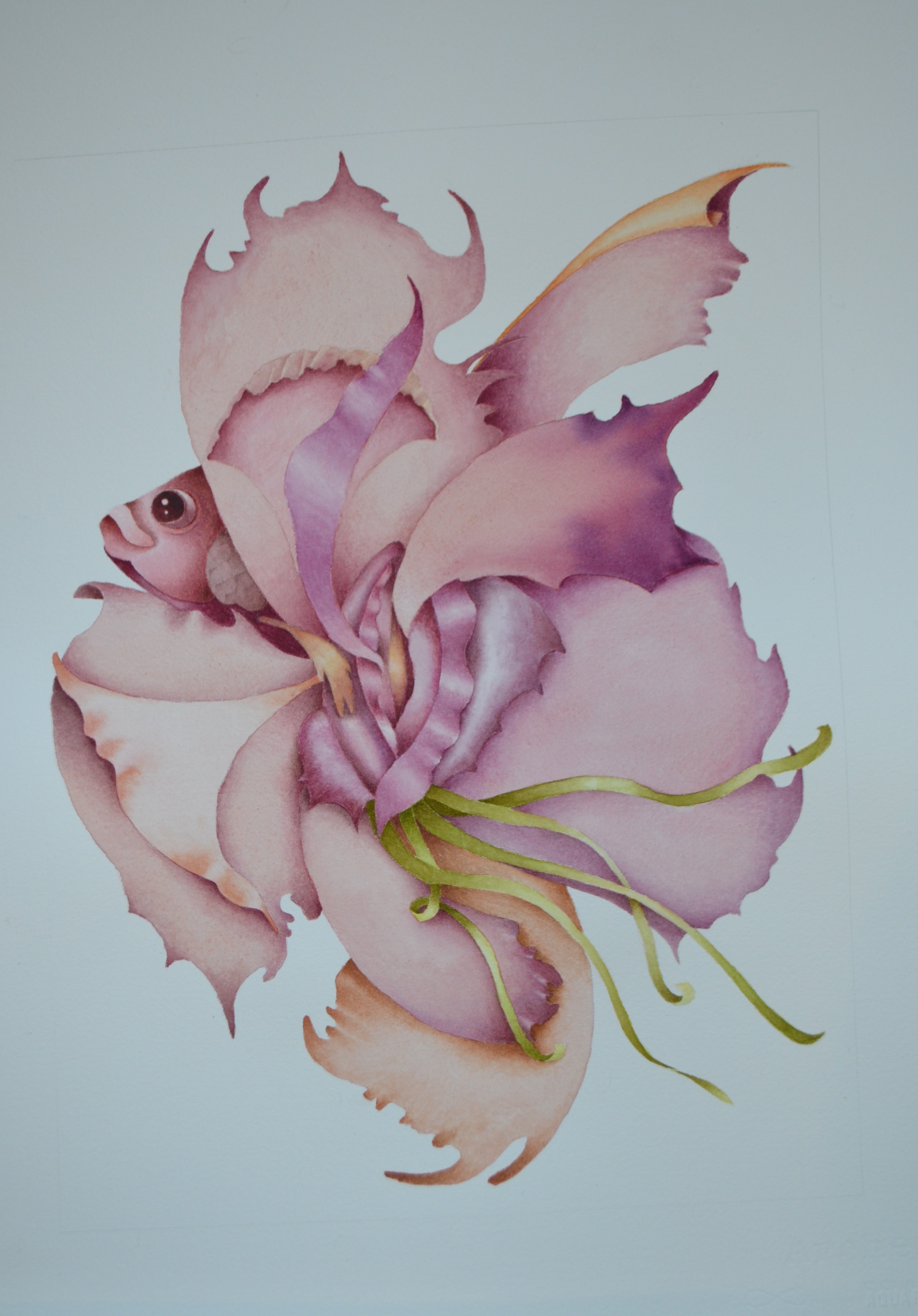 Les œuvres interrogent le lien de l’ Humain à l’eau, source première de vie, sans laquelle nous n'existons pas. Portraits de famille : poissons imaginés ,recomposés ,humanisés : du poisson à l’humain il n’y a qu’un pas , qu’une respiration.